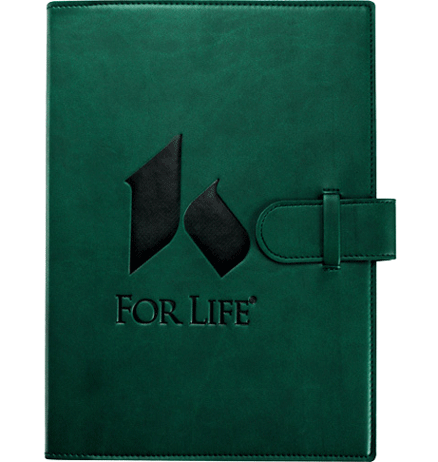 Features : Completely hand stitched and turned edges, with a foam-padded genuine leather cover, many interior pockets, and a pen loop. Ten business-card-size pockets on the left side, plus a document flap. Holds an 8 1/2" x 11" notebook or letter-size pad, with both vertical and horizontal slots on the right side. A 160-page lined spiral journal is included.
